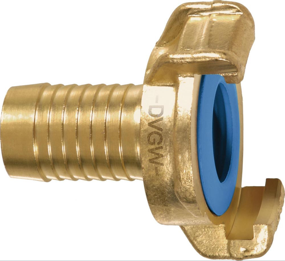 mit Tülle und Rippenprofil eignet sich ideal für die Schellen- und Presshülseneinbindung · aus bleifreiem Messing (CW508L-DW) mit einer blauen EPDM-Dichtung ausgestattet, für geprüfte Trinkwasserhygiene Anforderungen der KTW-Bewertungsgrundlage · DVGW-zertifiziert (DW-0310BT0218) · Betriebsdruck bis 40 bar und von -10 °C bis +85 °C ausgelegt · Klauenabstand 40 mm flexibel kombinierbar und vakuumbeständig bis 10 m Wassersäule · für Einsatzbereiche: Lebensmittelindustrie, Garteninstallationen, Outdoorküchen, Veranstaltungen sowie chlorhaltige Anwendungen wie Schwimmbäder · ab 2028 vorgeschriebene Anforderungen an bleifreies Messing erfüllt die Kupplung schon heute · bei aggressiven Reinigungsmitteln sollte auf Edelstahlvarianten zurückgegriffen werden