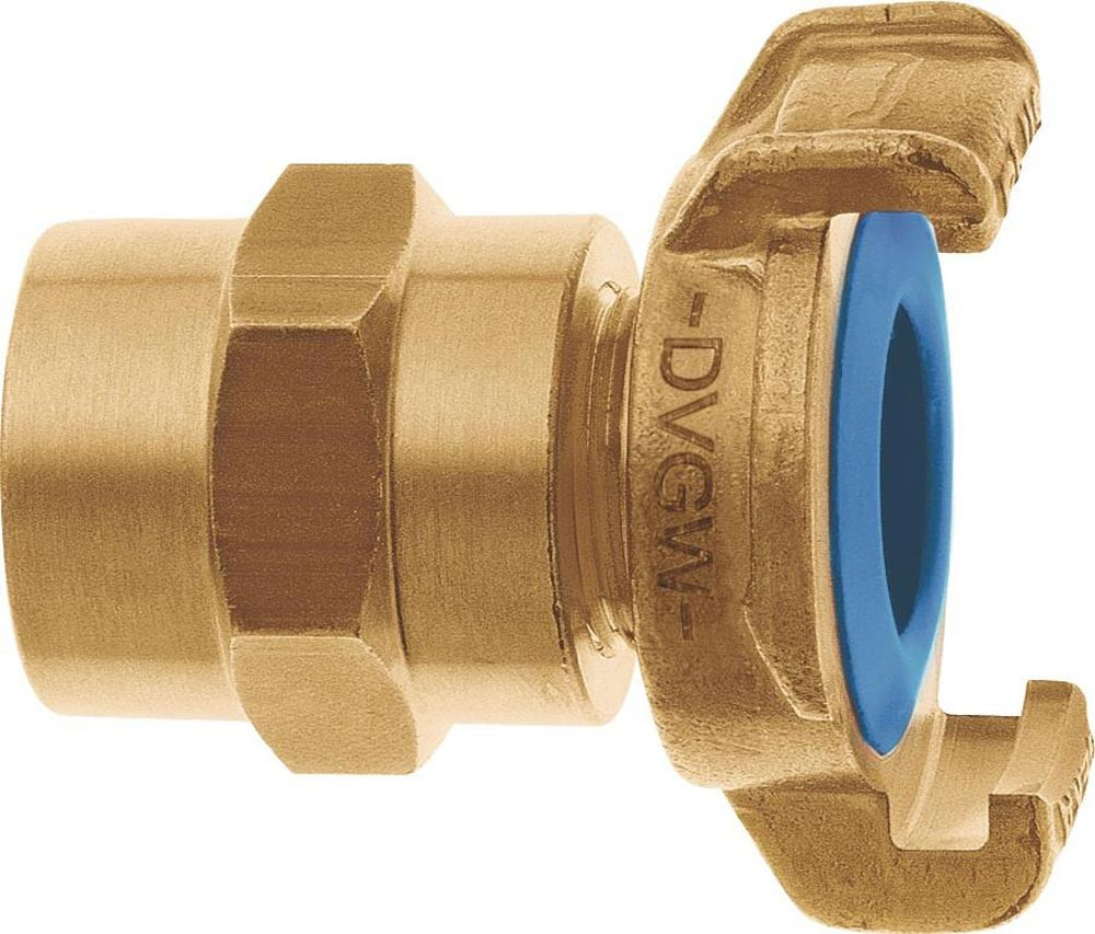 gefertigt aus bleifreiem Messing (CW508L-DW) mit einer blauen EPDM-Dichtung, erfüllt es bereits heute die Anforderungen der KTW-Bewertungsgrundlage sowie der DIN EN 16421 · DVGW-Zertifizierung (DW-0310BT0218) für hygienisch einwandfreies Trinkwasser · Betriebsdruck 40 bar · Klauenabstand 40 mm und Vakuumbeständigkeit bis 10 m Wassersäule · Temperatureinsatzbereich von -10 °C bis +85 °C · für Einsatbereiche: Lebensmittelindustrie, im Garten- und Outdoorbereich sowie für chlorhaltiges Wasser · für aggressive Reinigungsmittel empfiehlt sich der Einsatz von Edelstahlvarianten