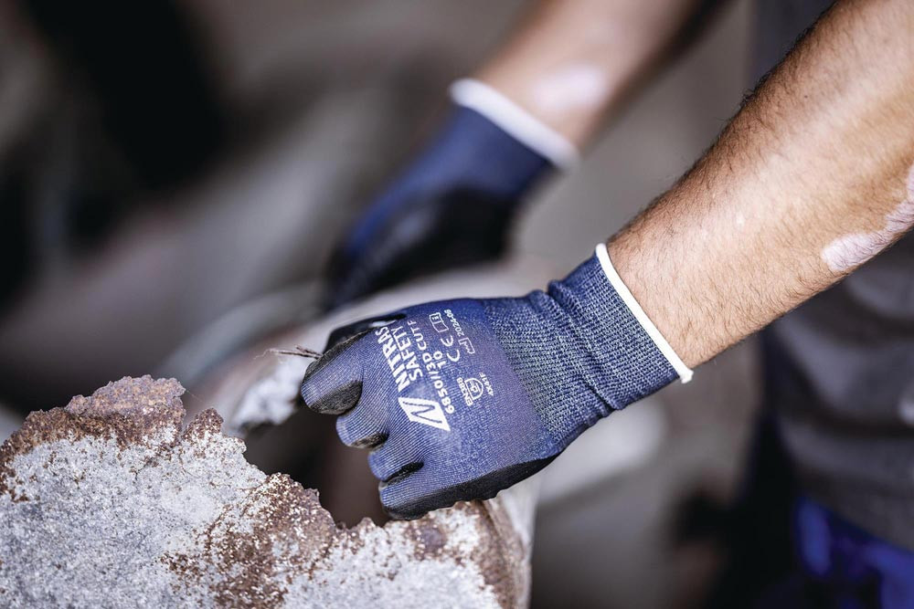 nach EN ISO 21420, EN 388 · Kat. II · Material: Spezialgarn (21gg) · Nitril-Mikroschaum-Beschichtung · teilbeschichtet auf Innenhand und Fingerkuppen · hohe mechanische Beständigkeit · sehr guter Trocken- und Ölgriff · Schnittschutzlevel F (ANSI A6 CUT) · perfekte Fingerfertigkeit · perfekte und innovative Passform dank 3D FIT · verstärkte Daumenbeuge · touchscreenfähig · Premium-Qualität · für Lebensmittelkontakt · OEKO-TEX STANDARD 100®