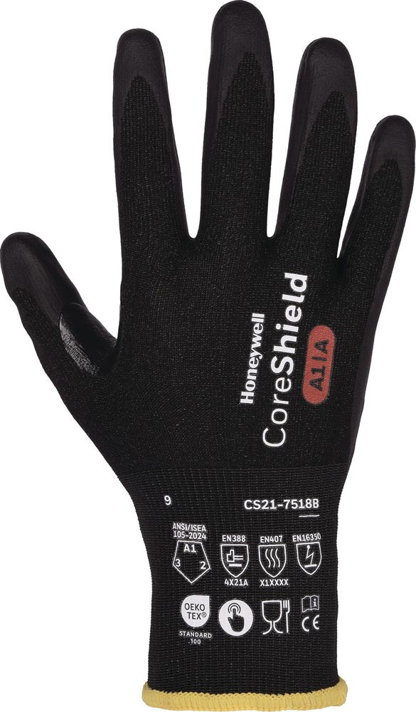 Schnittschutzhandschuhe CORESHIELD 18G BLACK Größe 8 schwarz EN 388, EN 407, EN 36350 PSA-Kategorie II