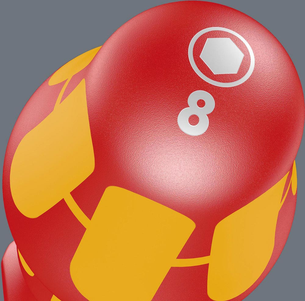 Wera VDE-Steckschlüssel mit mehrkomponentigem Kraftform-Griff für schnelles und schonendes Arbeiten: Harte Griffzonen für hohe Arbeitsgeschwindigkeit · während weiche Griffzonen hohe Drehmomentübertragung garantieren. Stückprüfung bei 10.000 V für sicheres Arbeiten bei der zugelassenen Spannung von 1.000 V. Der Sechskantabrollschutz verhindert lästiges Wegrollen am Arbeitsplatz.