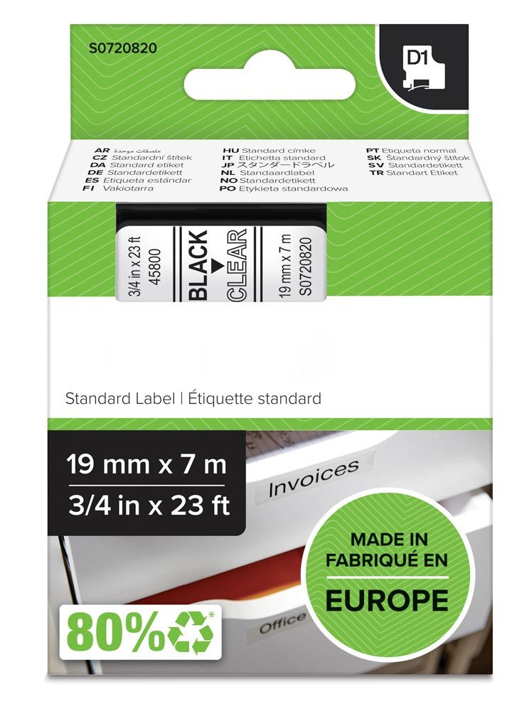 Schriftband Bandbreite 12 mm Bandlänge 7 m Standard schwarz auf transparent E828193