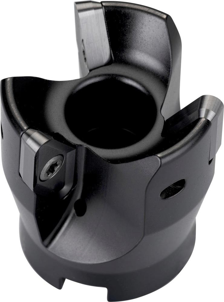 Schaftfräser mit doppelt positive Geometrie zum spannen von 3 Stück VCGT 220530F-FA einseitigen Wendeschneidplatten · Schnittdurchmesser 50mm mit 90° Anstellwinkel und 22mm Verbindungsbohrung gemäß DIN 8030-A · 56mm Überstandslänge · Kühlkanalbohrung zum Helikalen Fräsen und progressiven Eintauchen mit einer maximalen Schnitttiefe von 3.0 (16.0)mm