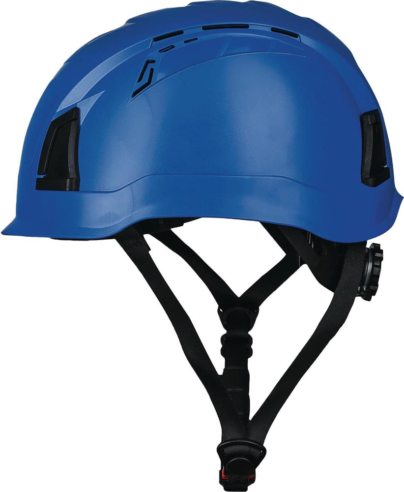 EN 397 · ABS · moderner, leichter Arbeitsschutzhelm · als Höhenarbeitshelm durch das kurze Dach und der Bergsteigerhelm nachempfundenen Form · hoher Tragekomfort mittels 6-Punkt-Textil-Bebänderung · austauschbares, hochreißfestes Stirnband · einfaches Anpassen des Kopfbandes durch modernes Ratschensystem · perfektes Klima dank neuartigem Belüftungssystem (obenliegende Ventilationsöffnungen) · inklusive montiertem Kinnriemen · Kopfumfang 53-66 cm · Anwendung: Höhenarbeit