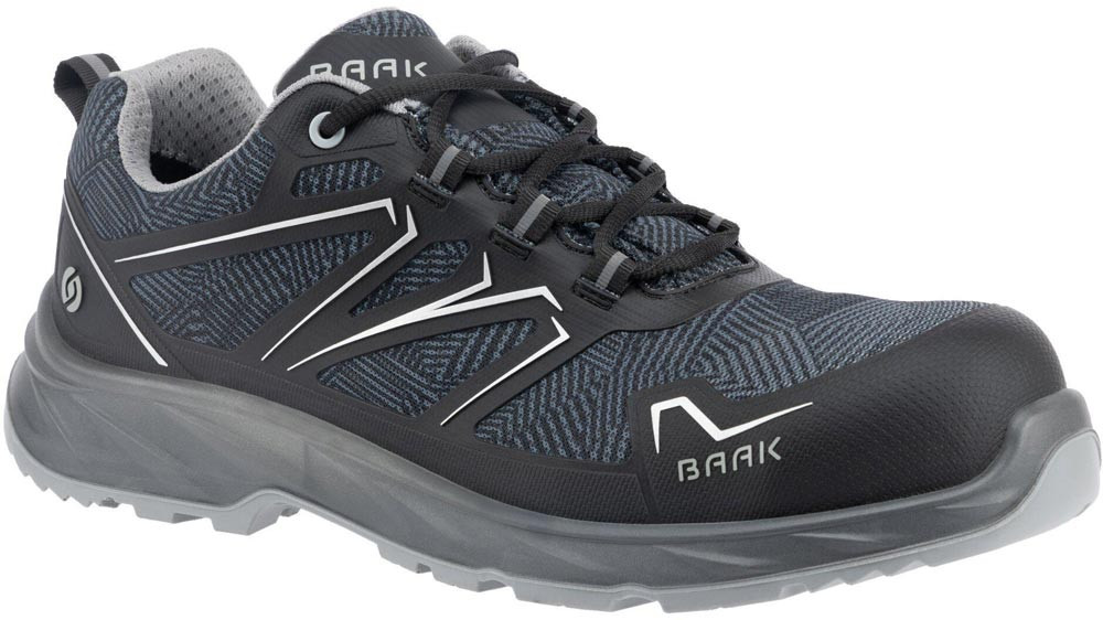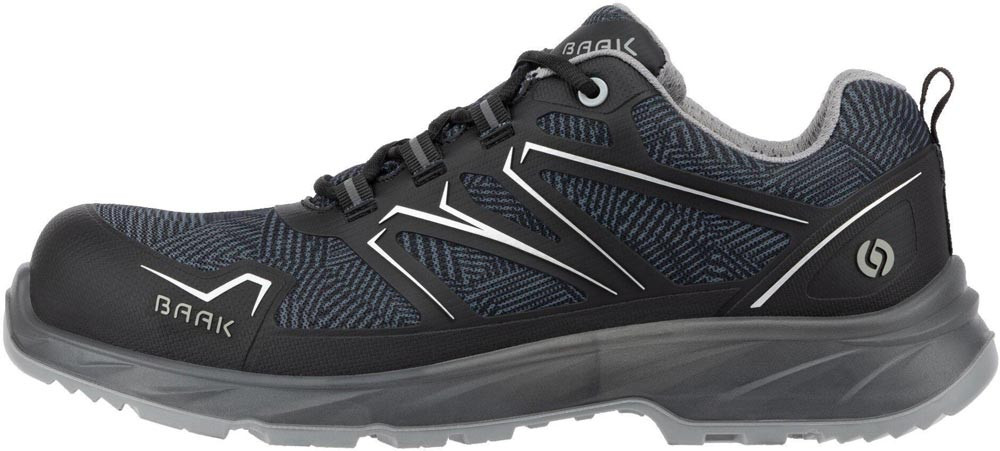 nach DIN EN ISO 20345:2024 · S3S FO LG SR ESD · Textilmaterial mit TPU-Applikation · Sandwich-Textilfutter · Composite-Flexkappe · Baak Go&Relax-System · Balance-Zone · ESD Softstep+ Einlegesohle · PU/PU-Sohle · textiler Durchtrittschutz · DGUV Regel 112-191 · Weite 11
