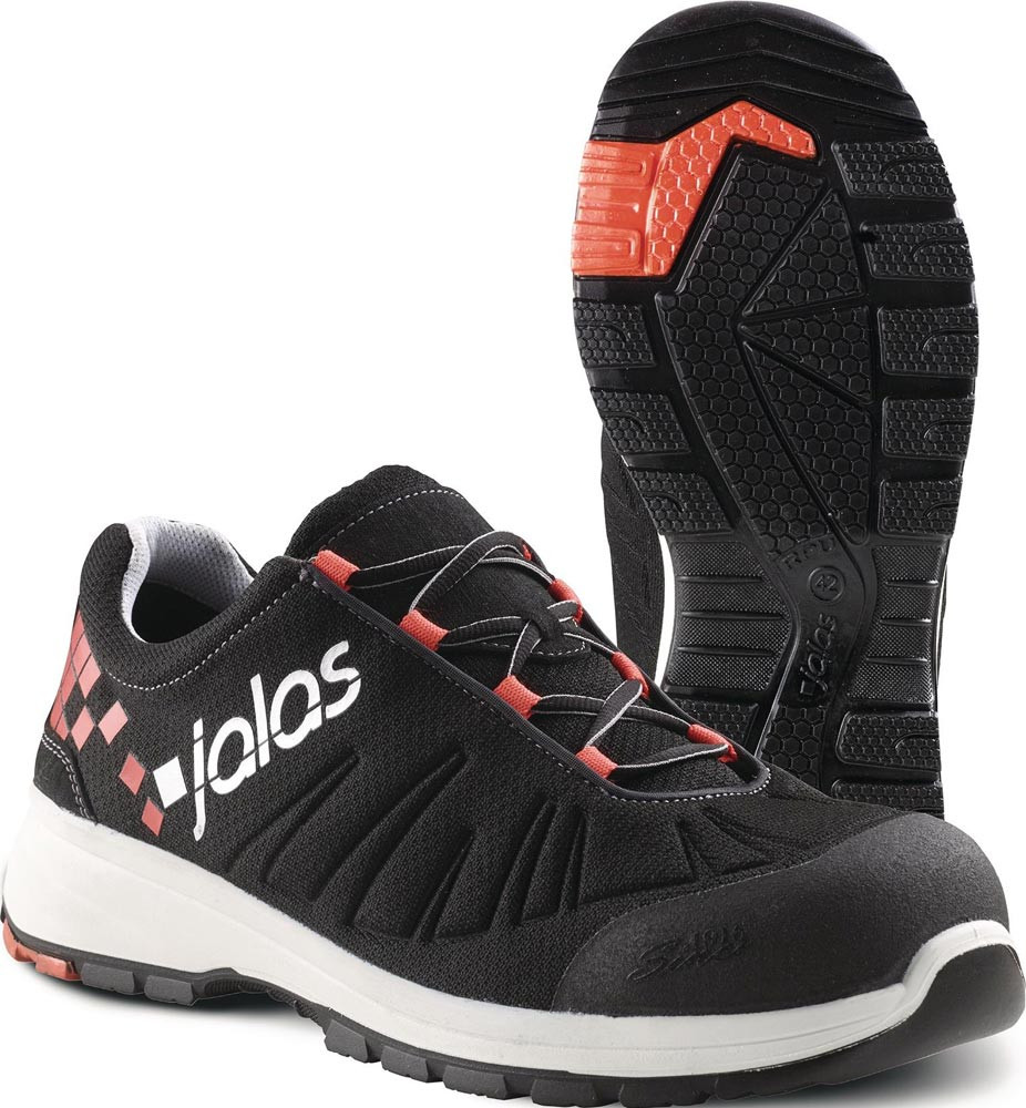 nach DIN EN ISO 20345:2011 · S3 SRC · weicher Sicherheitsschuh mit Textilstrick und Schnürsenkeln · hervorragende Ergonomie · Memory-Schaum-Polsterung und wasserabweisende Eigenschaften sorgen für Sicherheit und Komfort · mit JALAS® Zehenschutzkappe aus Aluminium · plasmabehandelter, textiler Durchtrittschutz und zwei Stoßdämpfungszonen aus PORON® XRD® · die ölbeständige RPU-Laufsohle bietet optimalen Grip, und die belüftete Innensohle hält die Füße kühl