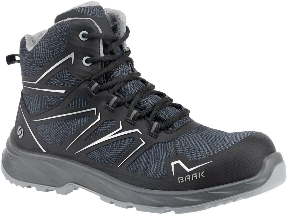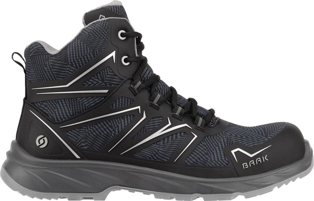 nach DIN EN ISO 20345:2024 · S3S FO LG SR ESD · Textilmaterial mit TPU-Applikation · Sandwich-Textilfutter · Composite-Flexkappe · Baak Go&Relax-System · Balance-Zone · ESD Softstep+ Einlegesohle · PU/PU-Sohle · textiler Durchtrittschutz · DGUV Regel 112-191 · Weite 11
