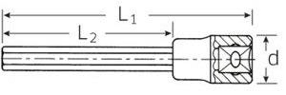 12,5 mm (1/2 ″)-Vierkantantrieb · extra lang · DIN 7422 · Chrom-Alloy-Stahl · verchromt · für Schrauben mit Innensechskant-Profil