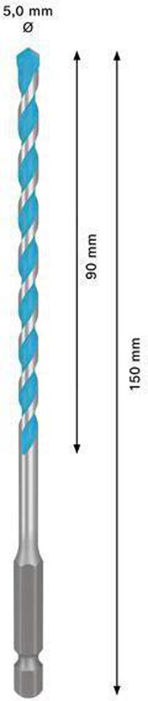 Steinbohrer Expert MultiConstruction HEX-9 Nenn-Ø 5,00 mm Arbeitslänge 90 mm Gesamtlänge 150 mm 6-kant