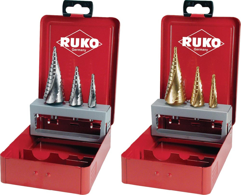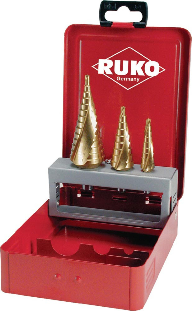 Stufenbohrersatz 4-12/4-20/4-30 mm HSS-TiN spiralgenutet 3-teilig Metallkassette