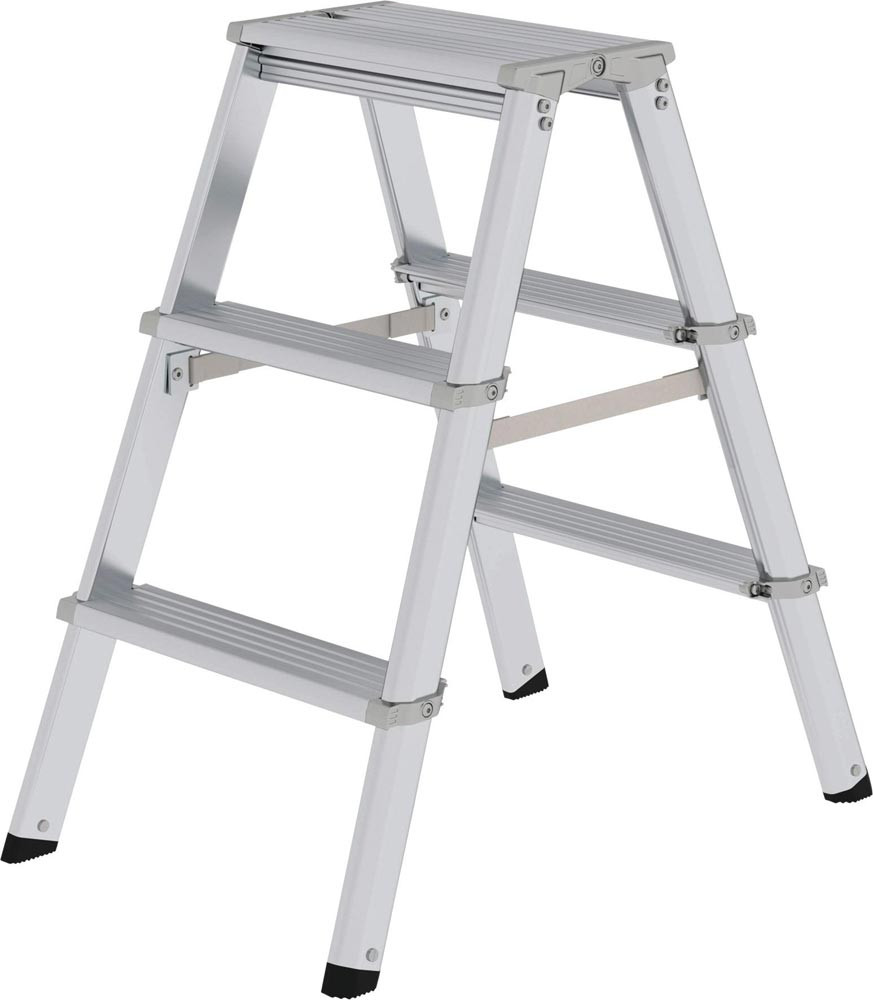 Stufenstehleiter 2 x 3 Stufen Aluminium Gesamthöhe 690 mm