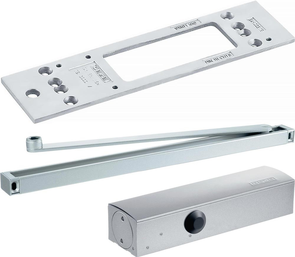 obenliegender Zahntrieb-Türschließer · EN 1154 A · für Anschlagtüren bis max. 1100 mm Breite · für Rauch- und Feuerschutztüren (Montage Türblatt Bandseite, Montageplatte verwenden) · einstellbare Schließkraft · Größe EN 1-4 · regulierbarer und hydraulischer Endschlag · regulierbare und thermostabilisierte Schließgeschwindigkeit · Funktionen von vorn einstellbar · klare Linienführung · für rechts und links angeschlagene Türen · Schließkraft seitlich einstellbar