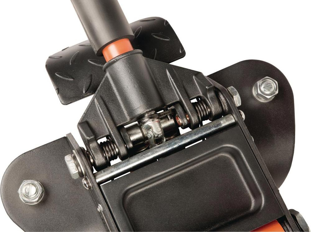 extra großes, gerundetes Fußpedal für guten Zugang aus jeder Position · Doppelkolben ermöglicht bis zu 50% schnelleres Anheben · Kolben und Feder vor Staub und Verschmutzung geschützt · Gummiauflage schützt den Autolack vor Beschädigungen und verhindert das Abrutschen · geschwungener Griff für höheren Komfort und besseres Handling · Polyurethan ummantelte Stahlräder für reibungslose, leise Nutzung · praktisches Ablagefach zur Aufbewahrung von Schrauben, Muttern und anderen Kleinteilen · Sicherheitsventil verhindert versehentliche Überlastung · Sicherheitsablass für gefahrloses Absenken auch unter Volllast · zertifiziert nach 2006/42/EC + BS EN1494
