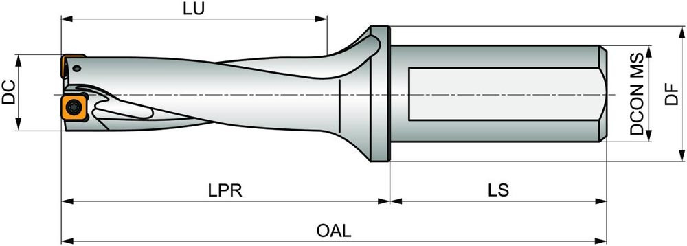 Wendeschneidplattenbohrer zum einsetzen von einer XPET 0703.. Wendeschneidplatten als Zentrumschneide und einer SCET 0602.. Wendeschneidplatte als Außenschneide · Bohrdurchmesser 0.875'' · mit einem 1.000'' abgeflachten Zylinderschaft nach ISO 9766 und Innenkühlung für maximale Bohrtiefen bis 3 x D