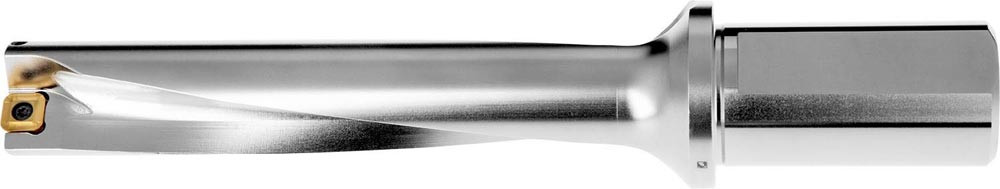 Wendeschneidplattenbohrer zum einsetzen von einer XPET 0903.. Wendeschneidplatten als Zentrumschneide und einer SCET 09T3.. Wendeschneidplatte als Außenschneide · Bohrdurchmesser 28mm · mit einem 32mm abgeflachten Zylinderschaft nach ISO 9766 und Innenkühlung für maximale Bohrtiefen bis 5 x D