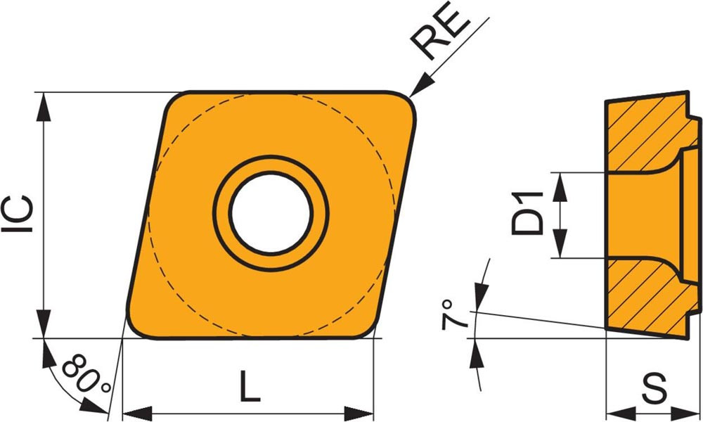 · Formcode Wendeschneidplatte: C - rhombischer 80° eingeschlossener Winkel