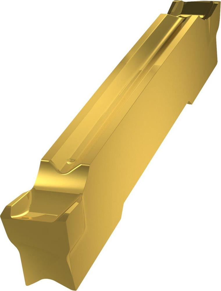 Doppelseitige Wendeschneidplatte zum Ein- und Abstechen · 25 mm lang · mit einer Schnittbreite von 3 mm und Eckradien von 0,2 mm · 6° und einer Schnittbreitentoleranz von ±0,05. Sorte G8330 PVD-beschichtetes feinkörniges WC-Co-Hartmetall innerhalb der ISO-Sortenbereiche P25–P40 und K20–K40 für die Bearbeitung von Stahl und Gusseisen. PR-Geometrie mit negativer Fase · erste Wahl für schwieriges Einstechen und Abstechen sowie kontinuierliche bis unterbrochene Schnitte.