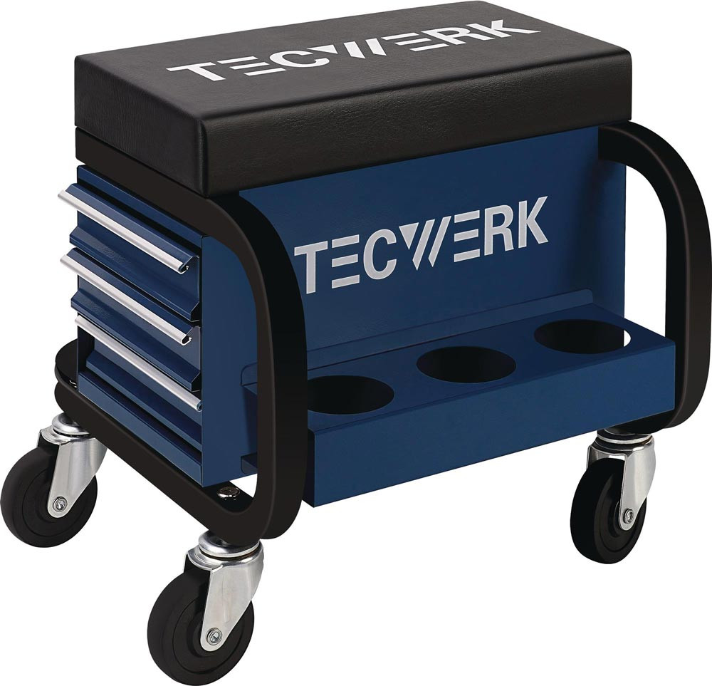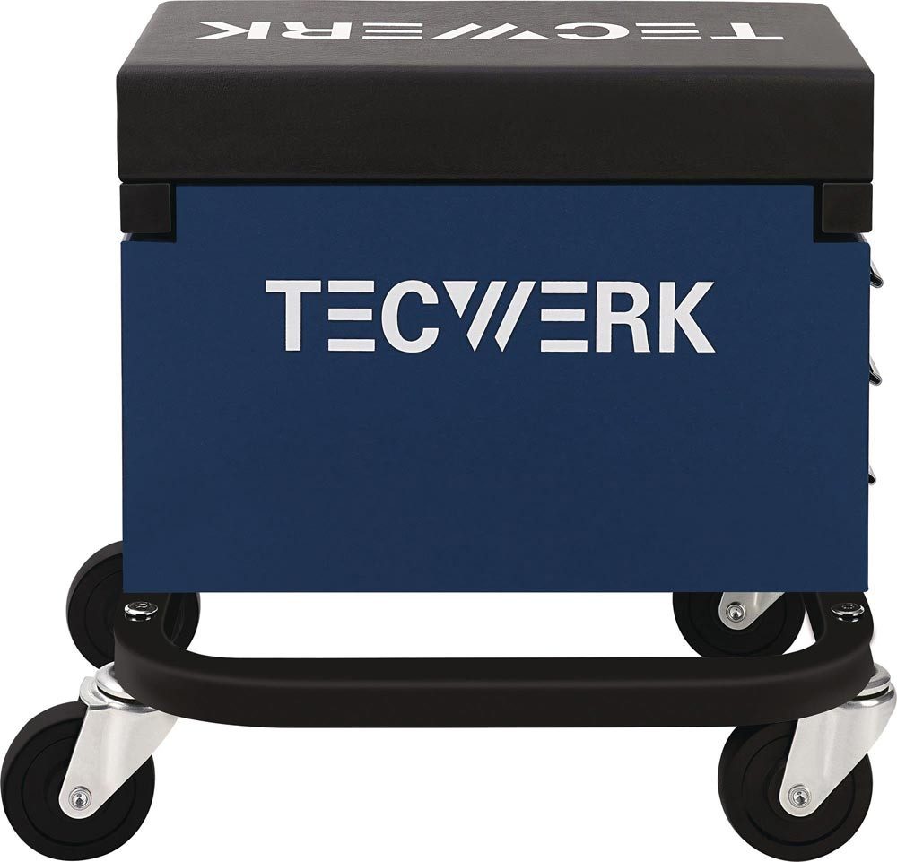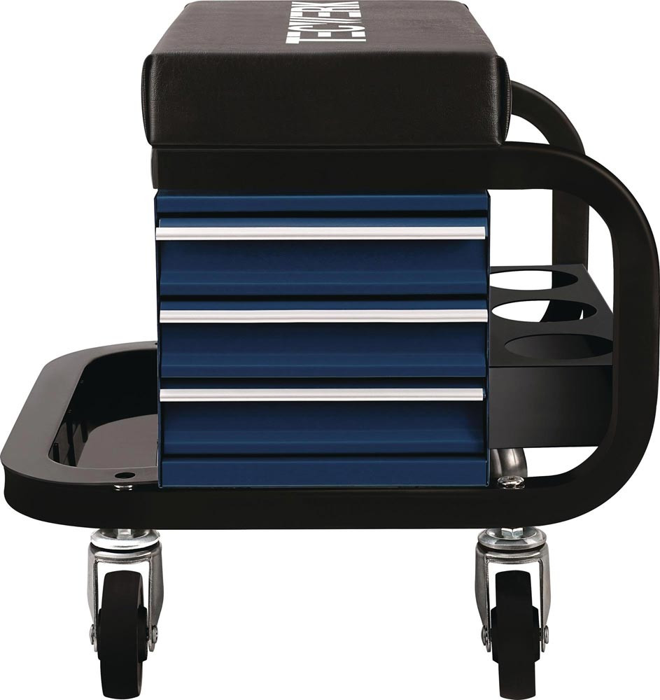 Werkstattrollsitz mit Rollen und Ablage Kunstlederpolster blau/schwarz